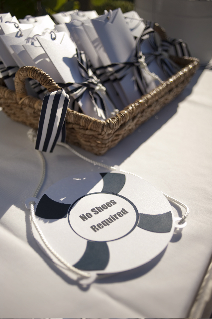 We designed and printed the programs, and assembled the eyelet, while the bride added the finishing touches of ribbons and rope, and put them into the pockets. The “life-saver” tag was designed by the bride.